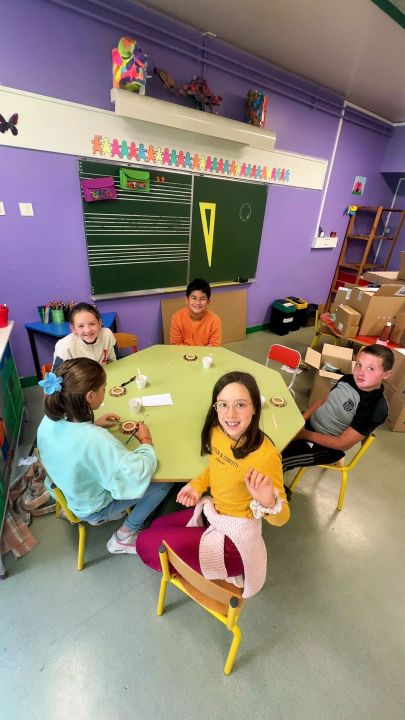 L’équipe d’animation, en collaboration avec l'équipe enseignante, est en cour de réalisation du “banc de l’amitié” dans la cour de récréation.